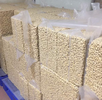 Usine de transformation de noix de cajou avec plusieurs divisions spécialisées.